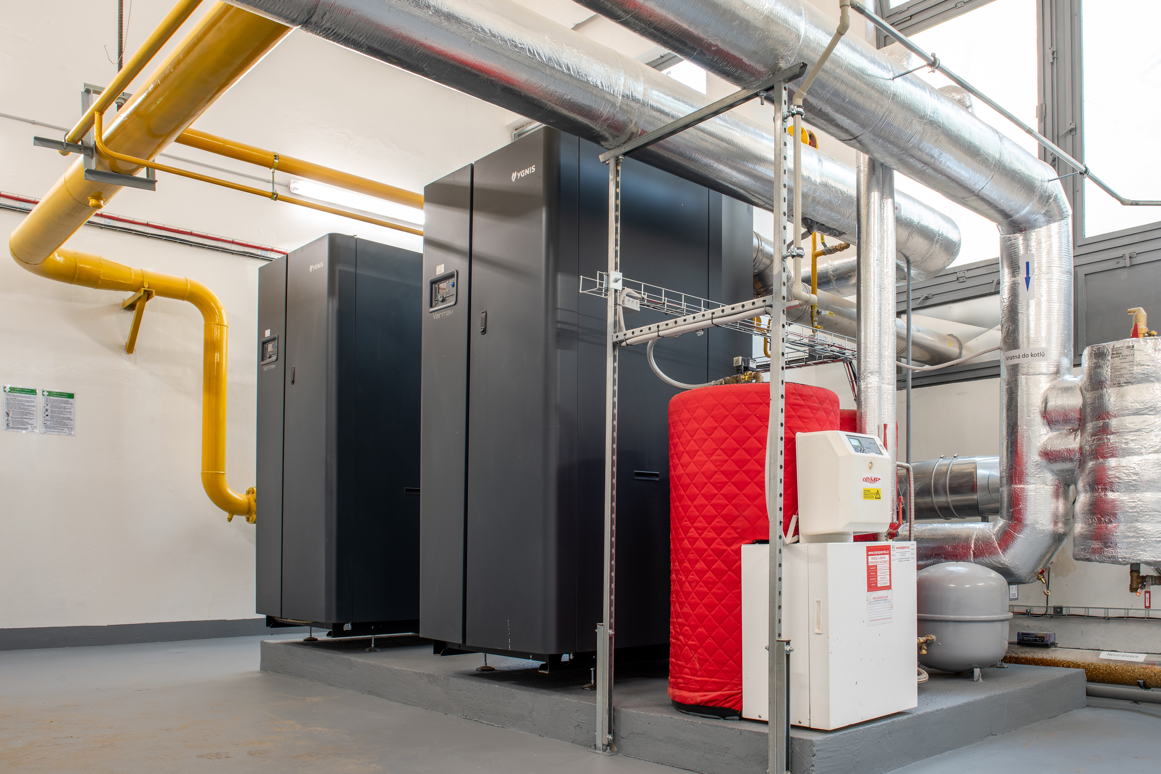 Stávající kotelna se zastaralou nekondenzační technologií byla již značně neúsporná, proto se investor rozhodl kotelnu modernizovat. Výrobu tepla zajišťuje zcela nová technologie dvou plynových kondenzačních kotlů Varmax 390 od výrobce Groupe Atlantic.