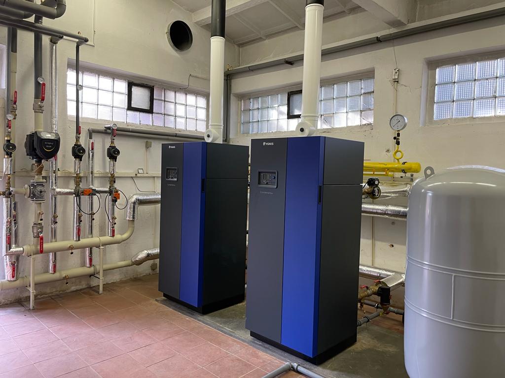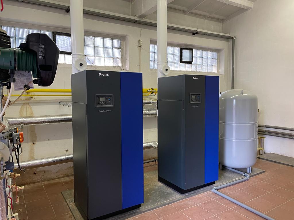 de o rekonstrukci zdroje tepla pro areál tiskárny v Turnově. V rámci rekonstrukce byla demontována stávající kotelna s plynovými kotli o celkovém výkonu 308 kW. Nová kotelna byla osazena kondenzačními kotli ATLANTIC CONDENSINOX 100 o celkovém výkonu 200 kW. Pro odvod kondenzátu slouží neutralizační box NEUTRAKON. Jednotlivé otopné větve byly osazeny novými oběhovými čerpadly a směšovacími ventily. Odvod spalin proveden koaxiálním systémem 160/110 mm přes střechu objektu.